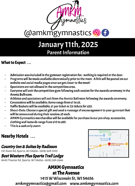 Admission is included in the gymnast registration fee!