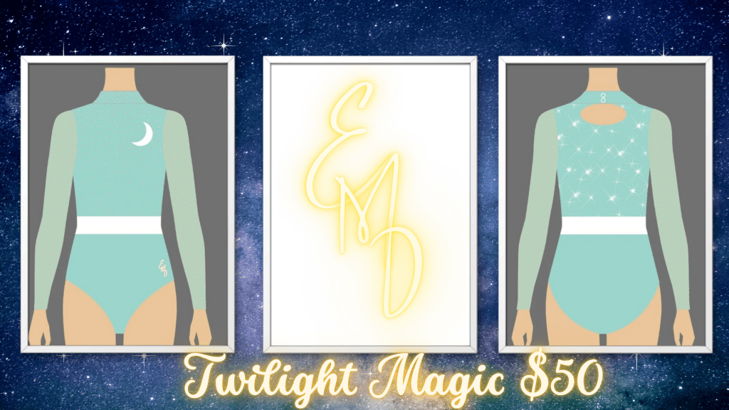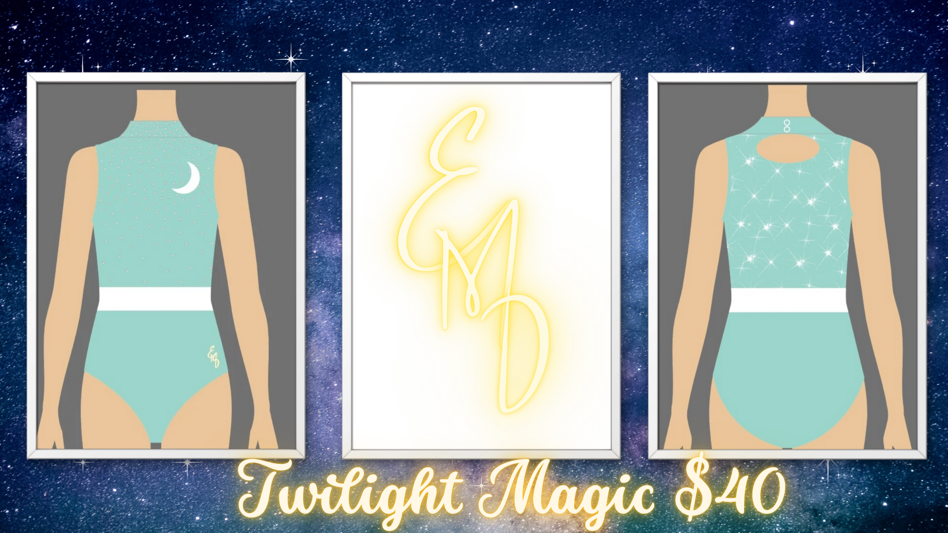Designed by Nelly for raising a whopping $450 at our Spring Splash Fundraiser, this leotard sparkles with silver rhinestones in the front and a starry night sky in the back. ![]()