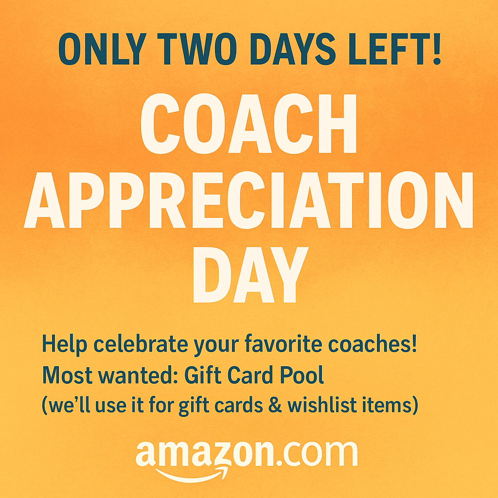 In addition, Team Mom Maria has created an Amazon wishlist so you can easily show your appreciation to our coaches and the Grining’s!