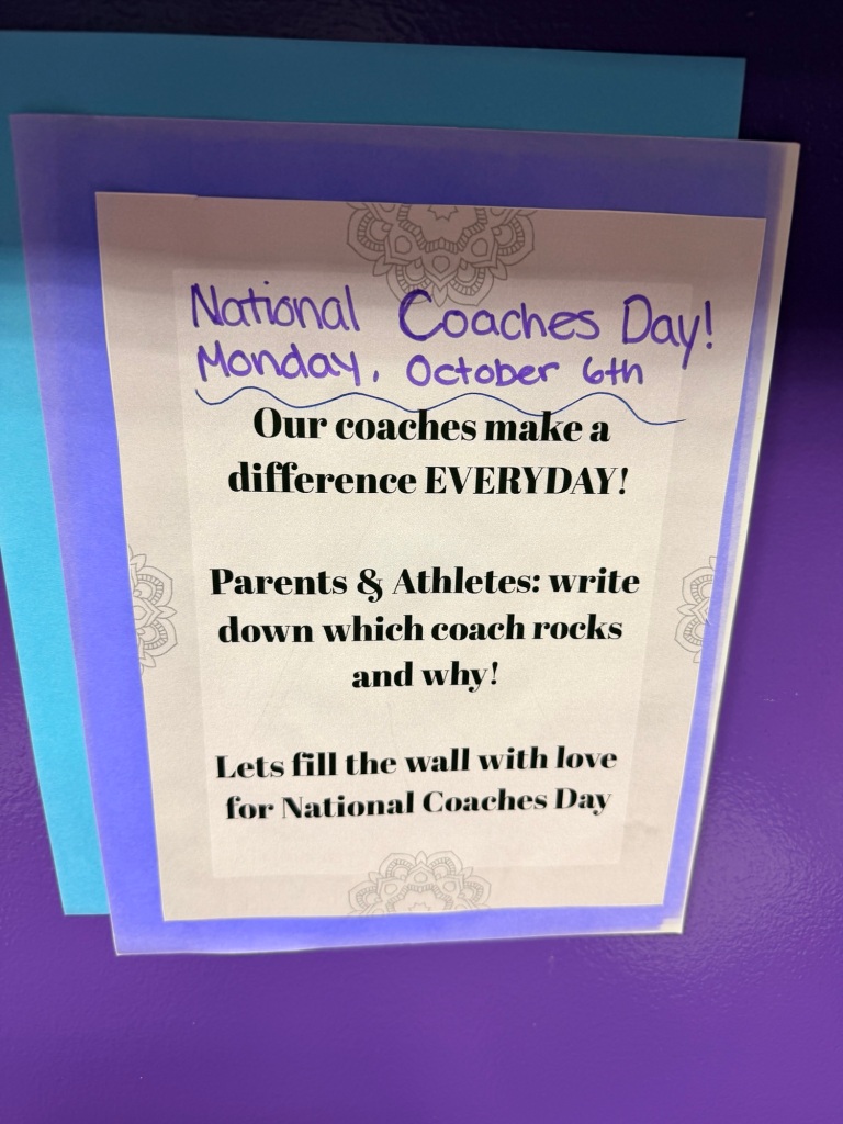 We have created a table near the front desk where you and your athlete can swing by and write a note to a coach that inspires your gymnast!