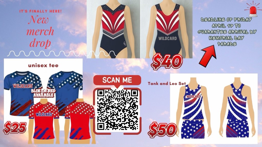 Reminder Memorial Day orders need to be submitted by end of day Friday. If you have questions on sizing you can contact Maria or Amy via text or fb messaging.